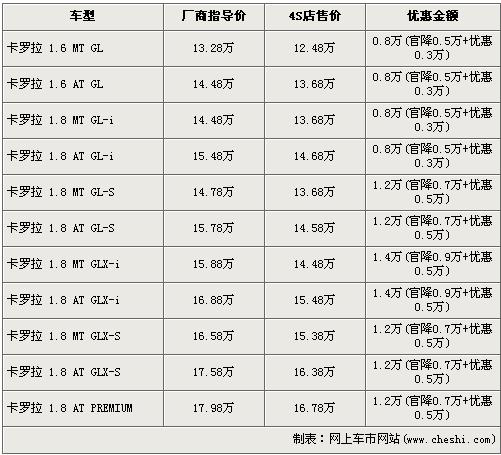 據4S銷售人員介紹,前段時間官方對卡羅拉全系調整了售價,最高官方降價達到了9000元,并且近期在店內購買卡羅拉的消費者還可以得到最高5000元的優惠,累計全系最高讓利達到了1.4萬元。經優惠后,全系入門級的1.6 MT GL版車型售價降到了12.48萬元。