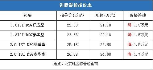 邁騰在北京二級市場上的優惠比較穩定,全系車型的優惠在1.5-1.7萬元區間。