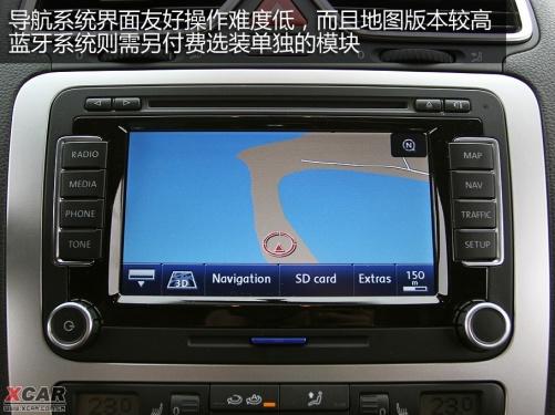 導航系統整合在系統之中,界面友好操作難度低,而且地圖版本較高。藍牙系統則需另付費選裝單獨的模塊。如此豐富的多媒體系統相當值得推薦,也難怪在小到POLO大到途銳都會將其列為高檔選裝配置,只是這臺試駕車的系統還未漢化。