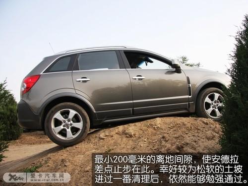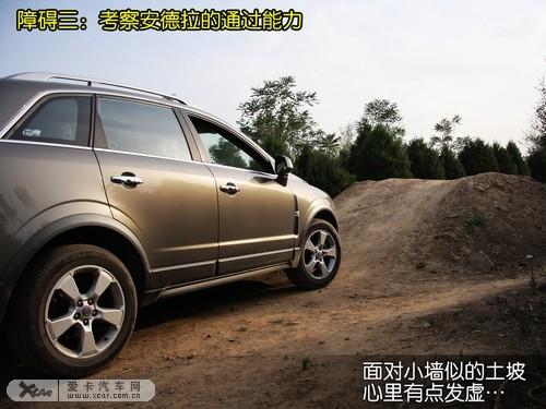 難度逐漸加大,前方陡然出現一座1米多高的土坡,這對于安德拉的接近角、離去角以及離地間隙將是莫大的考驗。擁有24度接近角、23度離去角和18.2度縱向通過角的安德拉,在接近土坡時還可以從容通過,但是最小200毫米的離地間隙,使安德拉差點止步在此。幸好較為松軟的土坡進過一番清理后,使安德拉能夠勉強通過。