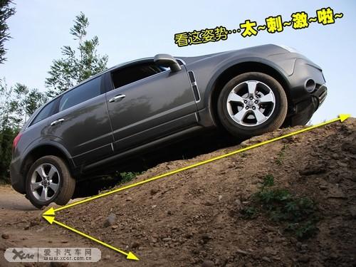 上坡容易下坡難,上坡時由于車身重心均轉移至后方,使上坡時接近角依然富裕。下坡則是另一番景象,由于車頭向下,車身重心均轉移到車頭位置,小心翼翼控制剎車,任何一個輕微的點頭,都可能減少接近角度數,最終有驚無險的克服了這一障礙。