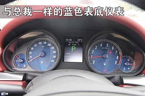 與總裁一樣瑪莎拉蒂GranTurismo的儀表盤采用的是藍色表底,白色數字非常的清晰,中央的信息顯示屏很實用,而320Km/h時刻提醒你它的能力有多大。