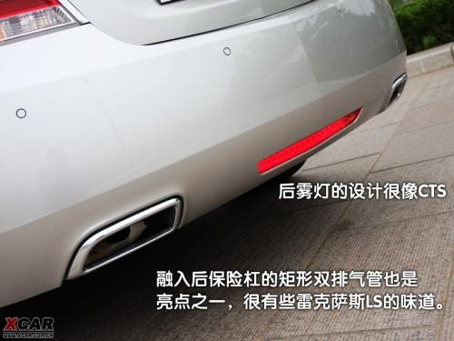 如果車頭的似曾相識讓你感到無趣,那么轉到車尾你就會眼前一亮。新君越的尾部顯然比車頭更能抓人眼球,兩排LED尾燈組科技感十足,夜間的照明效果也更好,類似昂科雷的鍍鉻金屬包邊也出現在尾燈上,不過所不同的是不再是奢侈的大面積包圍而只是上面有鍍鉻金屬勾勒出類似燈眉的效果。融入后保險杠的矩形雙排氣管也是亮點之一,很有些雷克薩斯LS的味道,甚至讓我有些懷疑這種精致設計是不是出自于眼前這輛美國車。