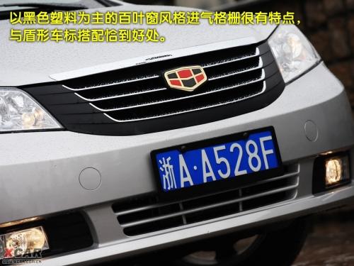 以黑色塑料為主的百葉窗風(fēng)格進(jìn)氣格柵很有特點(diǎn),個(gè)人感覺和以方塊為基調(diào)的盾形車標(biāo)搭配恰到好處。頭燈和尾燈都是眼下最流行的造型,雖然依稀還有些模仿的影子,但是整體效果不錯(cuò)。如果把帝豪車標(biāo)擋住的話,真的很難想到這是一臺吉利車。美中不足的是霧燈的設(shè)計(jì)有些單調(diào),如果能配合頭燈造型做得更精致的話,整個(gè)前臉會更出彩。