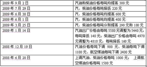 近2年成品油調價一覽