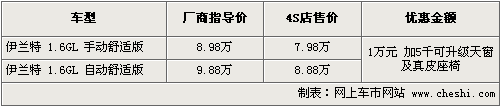 北京現(xiàn)代伊蘭特 優(yōu)惠幅度:現(xiàn)金優(yōu)惠1萬(wàn)元