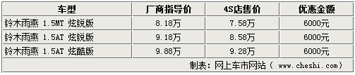 長安鈴木雨燕---現金優惠6000元