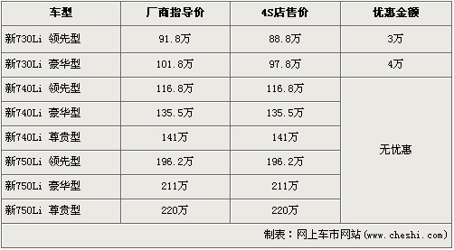 最高降13萬元 新7系/A8L等五款豪車行情