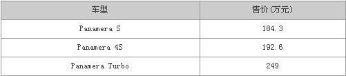 2009年11月9日,保時捷以“至善者不息”為主題,在廈門舉行了全新Panamera的發布會,并且宣布新車將于11月底于全國范圍內各家保時捷中心到店。共發布了三款車型,分別為Panamera S、Panamera 4S和Panamera Turbo,詳細車型售價請見下表: