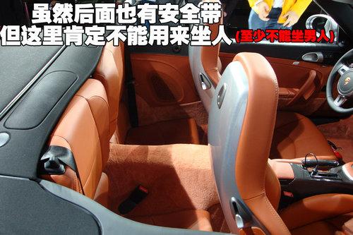 2010款保時(shí)捷911 Turbo敞篷版前排座椅為一體式運(yùn)動(dòng)型座椅,支撐有力且皮質(zhì)手感舒適。除座椅下方的電動(dòng)調(diào)節(jié)按鈕外,在椅背側(cè)面還設(shè)計(jì)了手動(dòng)扳手,從而方面后排乘客上下車。由于雙后座受到流線車體縮減的局促空間,并不適合體型略壯碩的成人長(zhǎng)途乘坐。
