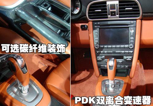 2010款保時(shí)捷911 Turbo敞篷版三輻方向盤兩側(cè)則依照人體工學(xué)設(shè)計(jì),分別加入音響通訊的控制鍵與滾輪,外側(cè)則是鋁合金的PDK換檔滑動(dòng)開關(guān),這項(xiàng)全新的方向盤換檔設(shè)計(jì),在人體工學(xué)的表現(xiàn)相當(dāng)優(yōu)異,利用食指或中指就能完成升檔與降檔的檔位變換動(dòng)作。