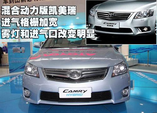 在外觀上,混合動力凱美瑞的前臉進氣格柵和霧燈以及進氣口和普通版區別很明顯。大燈的造型也有局部的調整。尾燈在造型上也和普通版有明顯的區別。回形燈組設計加入了更多流行時尚元素。