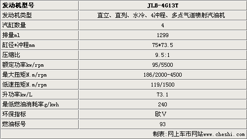 吉利即將推出的這款4G13T發動機采用廢氣渦輪增壓技術,并配備進氣智能連續可變氣門正時系統,也就是我們常說的CVVT技術。這款發動機的進氣歧管采用全塑材質,并采用電子節氣門和鏈齒正時驅動。雖然4G13T發動機的排量僅為1.3L,但最大功率達到了95kw,而且在2000轉的時候即可有186N.m的扭矩輸出,還擁有119N.m/1500rpm的低速扭矩,使這款車的提速相當迅猛。另外,4G13T發動機達到了歐Ⅴ排放標準,滿足歐洲市場的需求。