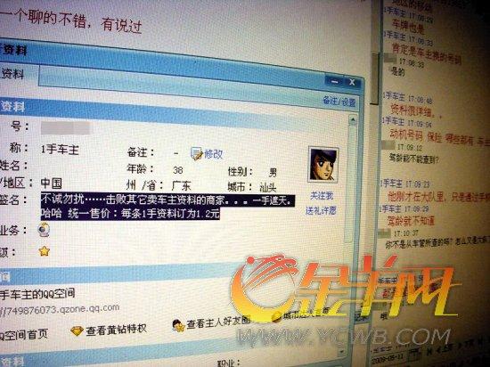 讀者王先生報(bào)料稱,“1手車主”主動加了他的QQ號碼,向他兜售資料,并且還發(fā)了30多個車主資料讓他驗(yàn)證。這批車主有34名,全是廣州車主,資料內(nèi)容包括車牌號、品牌、售車公司、車主姓名、精確到門牌號的詳細(xì)住址和手機(jī)號碼。記者從中挑選4個電話詢問發(fā)現(xiàn),信息完全準(zhǔn)確。