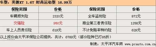 以指導(dǎo)價(jià)16.99萬(wàn)的英朗XT 1.6T 時(shí)尚運(yùn)動(dòng)型為例,保險(xiǎn)方面購(gòu)買(mǎi)了第三者50萬(wàn)元責(zé)任險(xiǎn),每年的保險(xiǎn)費(fèi)用為6789元。