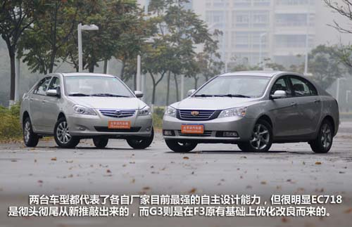 同樣不足9萬(wàn)元就可以從經(jīng)銷商店里開出來(lái);同樣給到你超乎想象的豐富配置;同樣是兩個(gè)自主品牌進(jìn)軍“中高端市場(chǎng)”的首發(fā)車型,實(shí)在有太多的理由要把比亞迪G3和吉利帝豪EC718這兩臺(tái)新力軍車型一起拉出來(lái)溜溜。但實(shí)際上不需要五分鐘時(shí)間,甚至還沒(méi)有把車子動(dòng)起來(lái),光是靜態(tài)觀察已經(jīng)足夠明白兩款車的不同取向。