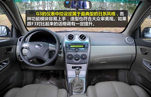 雖然比亞迪G3的總體內(nèi)飾設(shè)定還是能夠找到不少其他車型的痕跡,但起碼從整體效果上來(lái)看并不讓人失望。前排乘客的空間感足夠?qū)捲#曇耙蚕喈?dāng)寬廣。各種功能設(shè)定簡(jiǎn)明易用,不少按鈕還特設(shè)有中文標(biāo)識(shí)。至于以往自主車型并不太擅長(zhǎng)的人機(jī)工程學(xué)匹配,比亞迪G3上面也有了不錯(cuò)的改良,方向盤、座椅、腳踏板、檔桿、手剎等的空間位置都頗為理想。只不過(guò)是車廂內(nèi)的塑料感實(shí)在過(guò)于強(qiáng)烈了,影響了給人的第一印象。