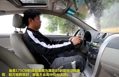 G3的座椅承托力還是不錯的,只不過側向支撐略有不足,而且真皮的質地實在不敢恭維,生硬而且過于光滑,要是遇到急剎車的情況,幾乎感覺不到坐墊產生的摩擦力。