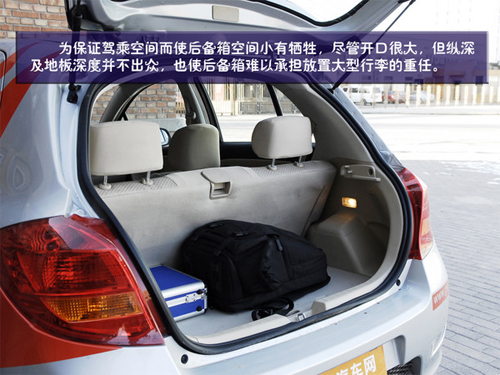 為保證足夠的駕乘空間而使得后備箱空間小有犧牲,盡管開口很大,但縱深及地板深度并不出眾,也使后備箱難以承擔放置大型行李的重任,我們的一個箱子和一個攝影包放進去并不擁擠,但余下的空間恐怕只能再擠下一箱純凈水。當然我們相信凌傲的車主更多的是追求駕駛的樂趣,如果您需要的是空間,或許應該考慮的是酷熊。尾箱側面還有一個側壁照明燈,在光線不好時后備箱也可以看的一清二楚。