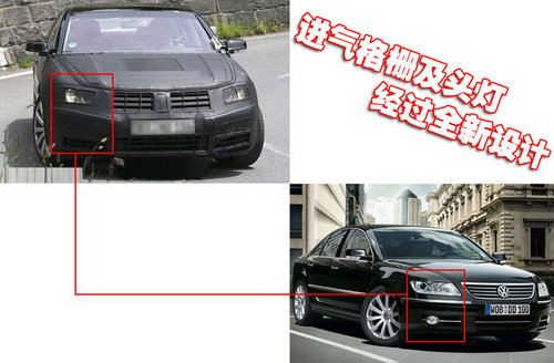 大眾新輝騰前臉采用上下分層的橫條形進(jìn)氣格柵,照明燈組大量使用LED照明。從曝光的新輝騰路試諜照看,前臉應(yīng)該是其改變的重點(diǎn),而在側(cè)面和尾部設(shè)計(jì)上變化將不會很明顯。