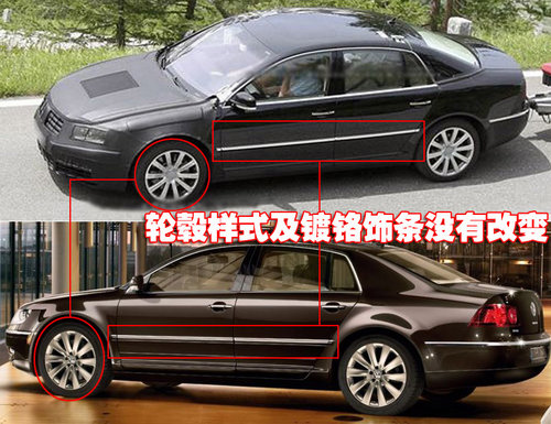 大眾新輝騰側面線條與在售車型保持一致,貫穿的鍍鉻飾條設計依然出現在大眾新輝騰的車身兩側。除此之外,10輻合金大尺寸輪轂依然沒有改變。