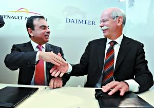 2010年4月7日,比利時布魯塞爾,當戴姆勒集團董事會主席迪特·蔡澈與雷諾-日產聯盟主席卡洛斯·戈恩同時在一份看起來非常簡樸的文件上簽字之后,世界汽車工業的格局再次發生了重大改變,戴姆勒-雷諾-日產新組成的聯盟,一躍成為排在豐田和大眾-鈴木聯盟之后的世界第三大汽車聯盟。