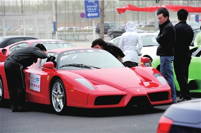 這些私家跑車車主組成的“超跑看車團”高調光臨北京車展。據悉,他們昨天又在車展上購入了數輛跑車。(張沫 陳婷)