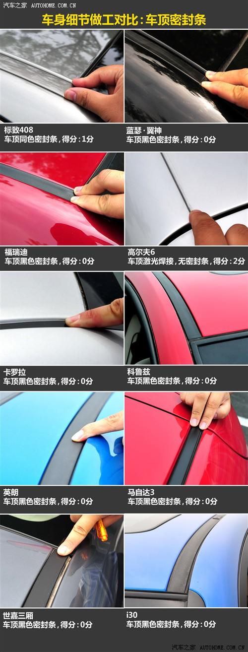 在這一環節的對比中,得分最高的高爾夫占了很大的便宜,其實是因為它采用了激光焊接的車頂,而出乎我們意料的不是高爾夫,而是福瑞迪,他的鈑金縫隙控制非常好,發動機蓋與翼子板和保險杠的接縫都非常小,在10款車中都是最小級別的。