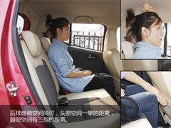 再來看新奧拓前后排座椅空間,在保持一個舒適坐姿的情況下,1.65米的編輯前排頭部離頂棚大概有兩拳左右的距離,后排頭部離頂棚有一拳的距離,腿部空間大概三指左右,總體來說表現還算不錯,尤其是前排的頭部空間很寬敞,顯然這得益于新奧拓所有車身參數的增大。