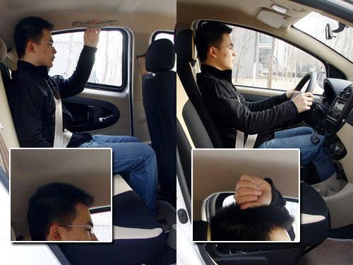 雖然前后空間足夠使用,但是從上圖我們可以看到,熊貓的后排頭部空間優化效果有些差強人意,不到175cm的身高的空間展示者在其后排已經接近于“頂天立地”,如果身高更高一些的話……