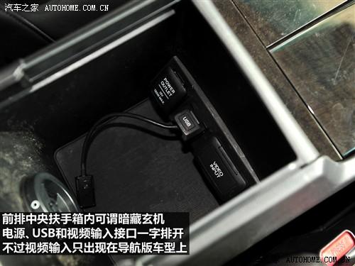 高配車型影音娛樂配置非常豐富,不僅可以使用車載的硬盤聽音樂,還可以直接播放DVD影碟,而在中央扶手箱內還帶有USB和視頻輸入接口,方便接入外部設備。