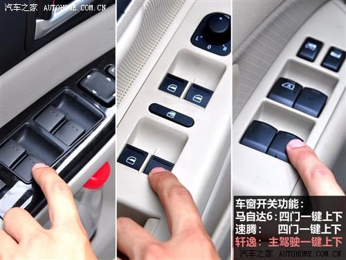 在這方面,馬自達6表現出了中型車的一些優勢,有軟性材質的中控臺、四門一鍵上下的車窗、鋁合金全尺寸備胎和四方向調節的多功能方向盤,只是因為設計年代較早而沒有行車電腦;速騰的表現也不錯,他有手感最好的中控面板和最強大的行車電腦,但備胎不能令人滿意,做工也出現一點瑕疵;軒逸在這方面并沒有表現出日系車型的優勢,這里體現出了一些他在成本上控制比較嚴格的不足。