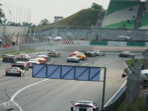 GT300、GT500兩組賽車同時發車,1號彎競爭非常激烈↑