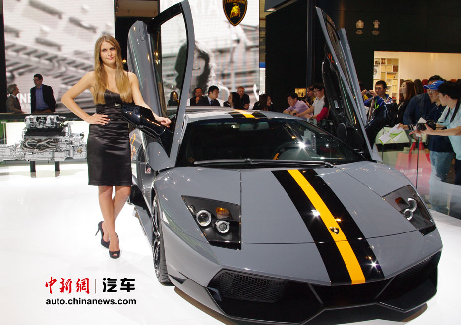 在人流如織的海外汽車巨頭的展館里,天價豪車成了當(dāng)仁不讓的最搶眼明星,相形之下即使再靚麗的車模也黯然失色。圖為蘭博基尼Murciélago LP 670-4 SuperVeloce