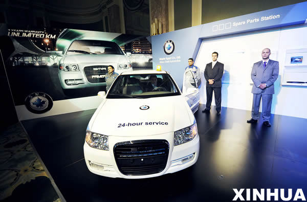 這是2月25日在埃及首都開羅拍攝的即將投放埃及市場的上海華普Primera汽車。當日,上海華普汽車有限公司在開羅舉行新車發布儀式,旗下的Primera、Romeo、Escala三款車型正式投放埃及市場。(張寧 攝)