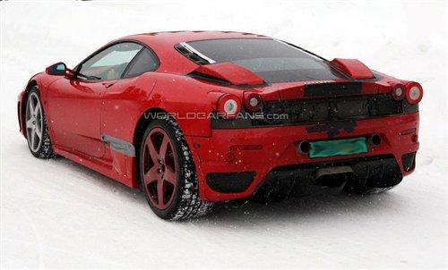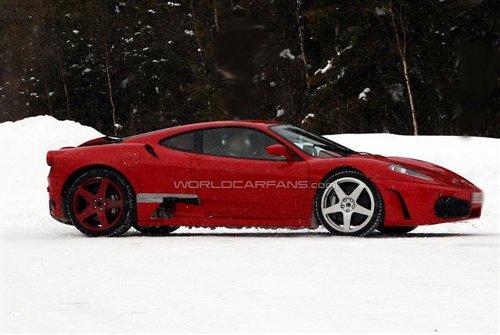 目前這款新車基本已經去掉了黑色的偽裝,正在進行雪地測試,但是從尾部我們可以發現,F450可能只是披著F430的外衣,實際車型在尾部會有一定的變化。