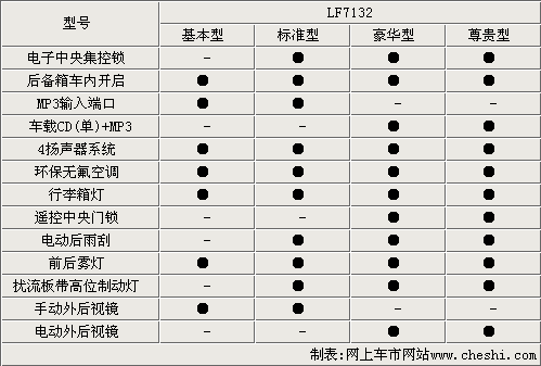 在舒適型方面,力帆320的配置也很到位,入門級車型也配備了MP3輸入端口,高配車型還配備CD音響,采用四聲道揚聲器系統,使娛樂性更加出色。這款車的行李箱內部配備燈光照明,方便夜晚的使用。而且該系列大部分車型也都配備了電動后雨刷、遙控中央門鎖、擾流板和高位制動燈。其中,兩款高配車型的外后視鏡采用電動調節,使用起來更加方便。