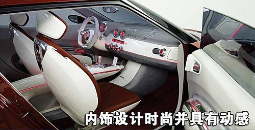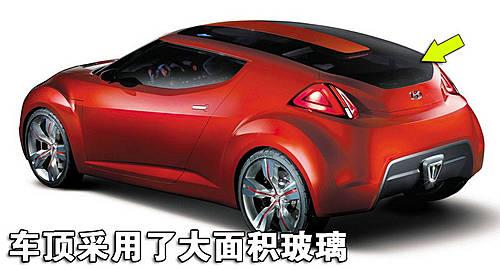 現(xiàn)代Veloster coupe概念車最大的特點便是采用了大面積玻璃車頂,內(nèi)廂為明亮的紅色配白色,再用高亮度金屬點綴,具有韓國式的現(xiàn)代感。中控臺上的音響系統(tǒng)可以連接蘋果iPod,短小的變速擋桿旁邊是發(fā)動機啟動按鈕。