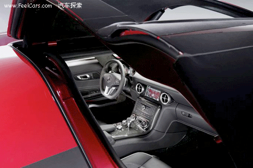 有了F1這么一個巨大的平臺,奔馳可以把自己的跑車也安插上F1的元素。比如說儀表盤上的換擋指示燈,配合7500轉的紅線轉速,肯定會讓駕駛者興奮不已。 SLS AMG采用的是奔馳給多數AMG車型配備的6.2升V8發動機,但是最大功率已經調至563馬力!配合7速雙離合變速箱,SLS AMG從0到100的加速僅僅需要3.8秒,不給自己的同門師兄SLR留任何的情面啊。
