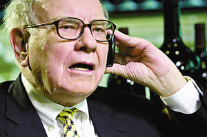 可以肯定的卻是,巴菲特在1年前那場金融危機的高峰期間,每天都要接到大量求助電話。有時候,巴菲特為了謀求高額回報,偶爾也會同意幫助電話另一端陷入恐慌的金融家。比如,在去年秋天金融危機最嚴重的時候,巴菲特向高盛集團注資50億美元,得到了股息率10%的累積優先股。兩周之后,巴菲特還獲得了通用電氣(GE)的永久優先股和認股權證。(吳文)