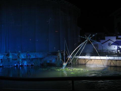 昨晚,可容納千人的《四季周莊》觀眾席座無虛席,演出的三個篇章--漁歌、漁婦、漁燈、漁作表現的“水韻周莊”;以春的《雨巷》、夏的《采藕》、秋的《豐收》、冬的《過年》反映的“四季周莊”;迎財神、打田財、阿婆茶、水鄉婚慶展示的“民俗周莊”,場面恢宏,江南水鄉文化的獨有性深深吸引著海內外游客眼球。