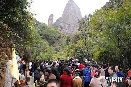 中新網韶關1月28日電(馮昶 劉加青 李正紅)今天是大年初三,廣東丹霞山景區內游人如鯽,迎來了牛年春節旅游首個接待高峰。
