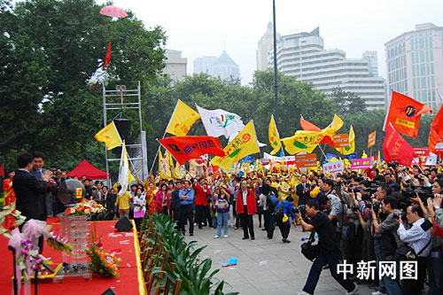 中新網(wǎng)廣州2月23日電(記者 莫非 通訊員 月明 梁婕 鐘山)廣東旅游業(yè)界2009年大利好浮出水面,國民旅游休閑計(jì)劃23日開始正式實(shí)施。廣東省各大旅業(yè)集團(tuán)、旅行社紛紛積極響應(yīng),召集了來自珠三角地區(qū)4000多名游客聚集在廣州中山紀(jì)念堂前參加啟動儀式。