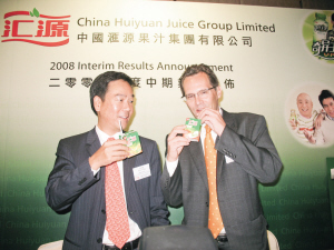 匯源果汁(01886.HK)半年業績說明會昨日在香港召開,公司主席兼總裁朱新禮因參加其他會議而缺席,代表公司回答媒體提問的公司副總裁兼首席財務官吳育強表示,可口可樂收購匯源果汁的價格是經過慎重考慮,并且得到三大股東同意的。