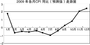 對于2009年CPI同比走勢的預測,我們主要考慮到以下三個方面因素:一是近期食品和非食品價格的運行趨勢;二是歷年(2001年-2008年)各月CPI的環比平均值;三是在1-2月間移動的春節因素對CPI環比的影響。