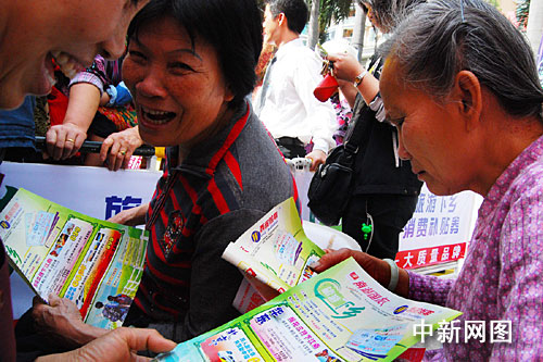 而肇慶市七星巖牌坊廣場也好不熱鬧,擠滿了特意前來選購“旅游下鄉”線路的肇慶各鄉鎮農民,看到那么多質優價廉的旅游線路,他們臉上都綻放出燦爛的笑容。