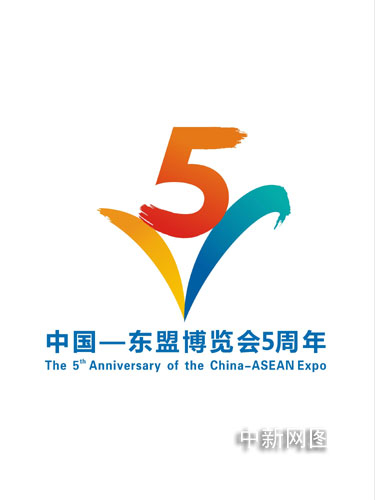 據介紹,中國—東盟博覽會5周年標志和宣傳畫,是從眾多投稿中精選,經有關領導和專家修改完善后最終確定的。博覽會5周年標志由阿拉伯數字“5”和英文字母“V”組成!癡”由博覽會會徽中的兩葉花瓣組成,既是羅馬數字中的“5”,同時又是英文Victory(勝利)中的第一個字母,寓意中國—東盟博覽會5年來取得了輝煌的成就。