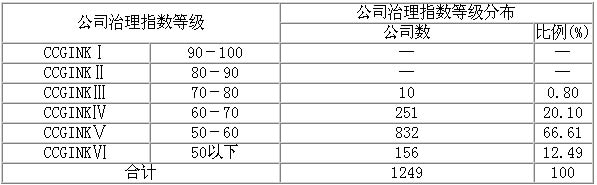表5 公司治理評價總指數(CCGINK)等級分布