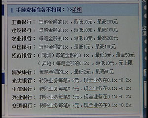 跨行通存通兌業務開通前四天,出現了叫好不叫座的情形,很多客戶其實也希望能享受這種便利,但是一看到銀行的收費標準,就打退堂鼓了。而記者也注意到,在各家銀行各自拿出的收費單上,門檻高的都是國有商業銀行,而那些股份制商業銀行收費卻普遍較低,中間相差最大的甚至達到了十倍,為什么同一個業務,不同銀行之間的收費差距會這么大?