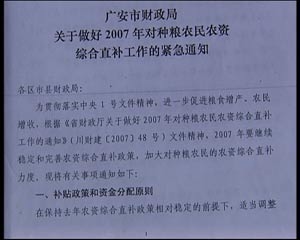 鄧永學說的每畝補貼25元,指的是2006年的種糧補貼標準,根據(jù)記者了解,在武勝縣,2006年對于農(nóng)戶種植一畝糧食直補和綜合補貼總計25.12元,而在2007年,每畝補貼提高到了51.05元,國家的種糧補貼額度提高了一倍,然而,在當?shù)兀瑖覍ΨN糧補貼的提高速度趕不上生產(chǎn)成本的漲價速度。